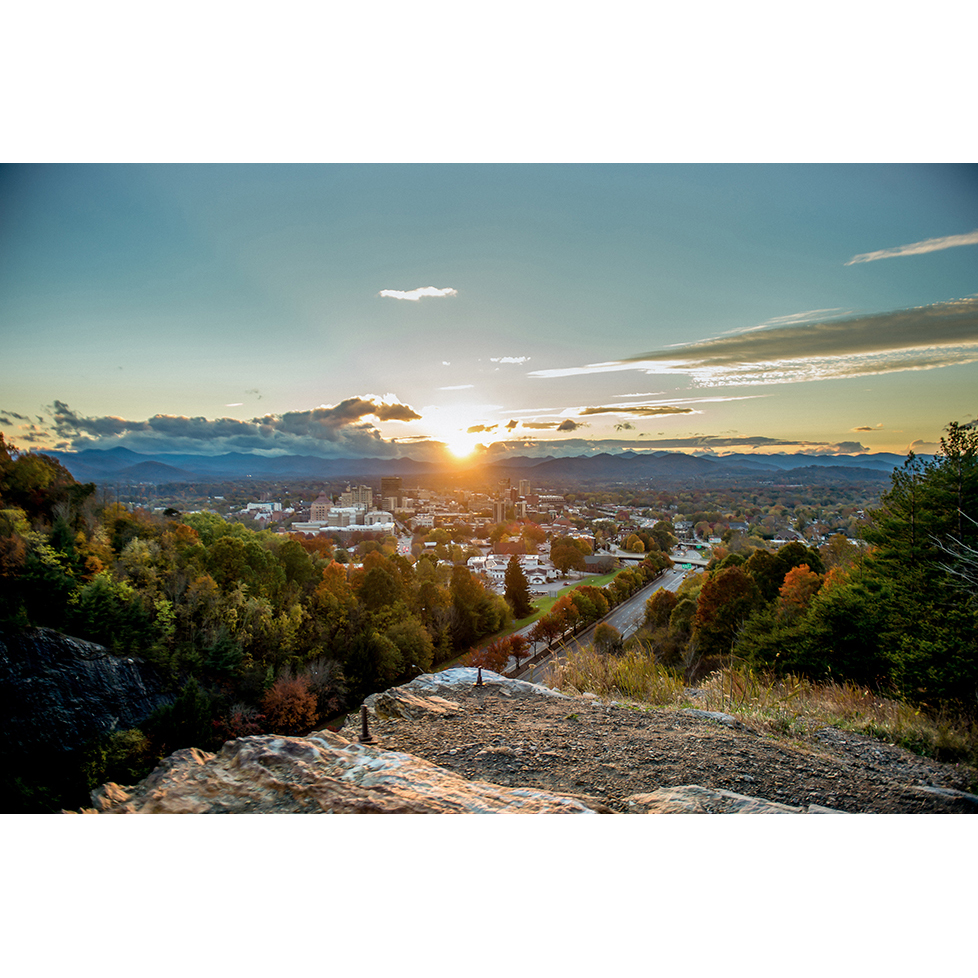 Downtown Asheville from “The Cut”. Please note that this image was taken a few years ago when it wasn’t illegal to get this shot. – Asheville, NC Sunset
