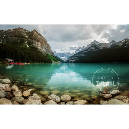 The beautiful emerald waters of Lake Louise in Alberta, Canada. This photo was taken in early summer, shortly after the lake had thawed. We love the boat house, the water, Mount Victoria in the background, and everything we explored in Banff National Park!