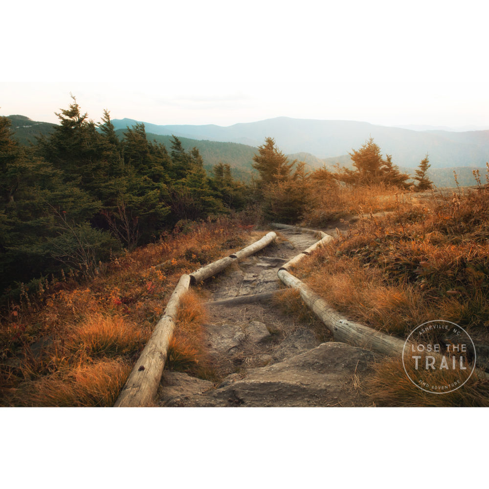 Photograph of some beautiful golden light on the trail from Mt. Craig to Mt. Mitchell on the Blue Ridge Parkway in North Carolina.