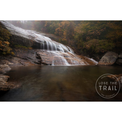 Lower Graveyard Fields Falls in the fog on a beautiful fall morning.
