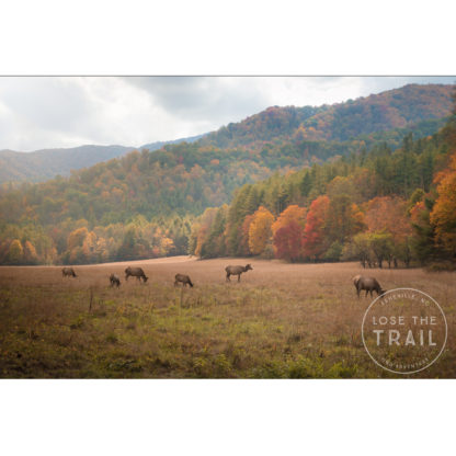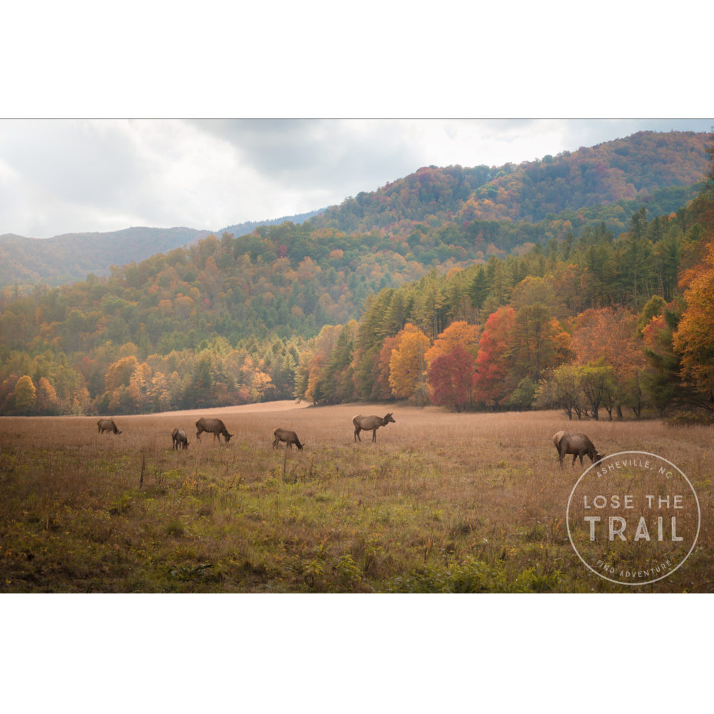 Elk Grazing in the golden light in Cataloochee Valley in the Fall.