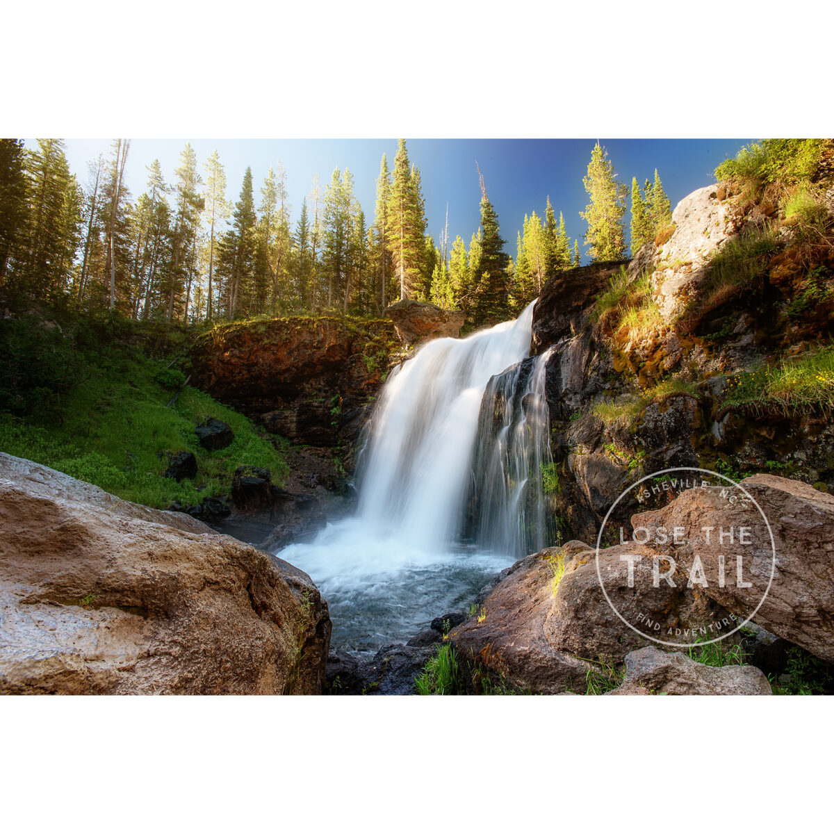 Moose Falls, located on Crawfish Creek in Yellowstone National Park. The waterfall was named after the abundance of moose found in the southern section of the park. The falls can be found very close to the south entrance of Yellowstone National Park in Wyoming.