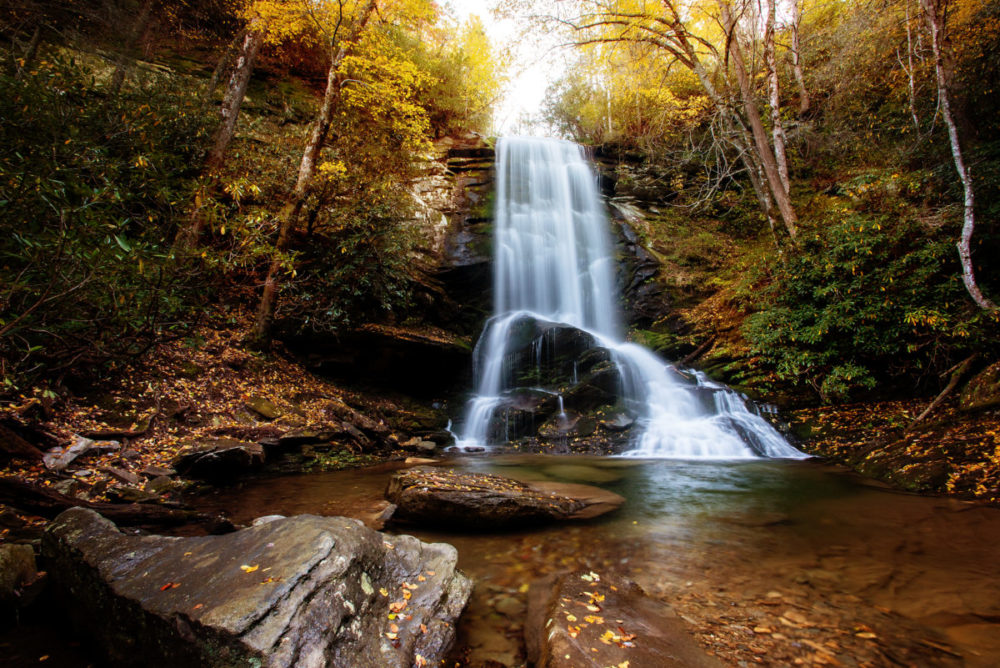 Autumn image of Upper Catawba Falls, located in McDowell County, near Old Fort, North Carolina. Mountain Waterfall, NC